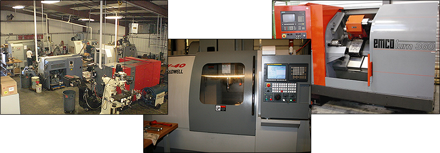 Our CNC Milling and Turning department consists of numerous state-of-the-art Milling and Turning centers made by some of the best equipment builders in the industry. With 3 Milling and 5 Turning Centers we have bar feeder capability that can handle up to 3" in diameter, a 4rth axis and a full Trunion system. Several of our CNC machining centers include custom designed quick-change fixtures. The quick-change fixtures significantly reduce change-over time as well as increase batch to batch consistency. Also all CNC machines are equipped with high pressure coolant systems to ensure longevity of tool life. Additionally all CNC programs are uploaded and downloaded at the machinist's workstation with is located right next to the machine.